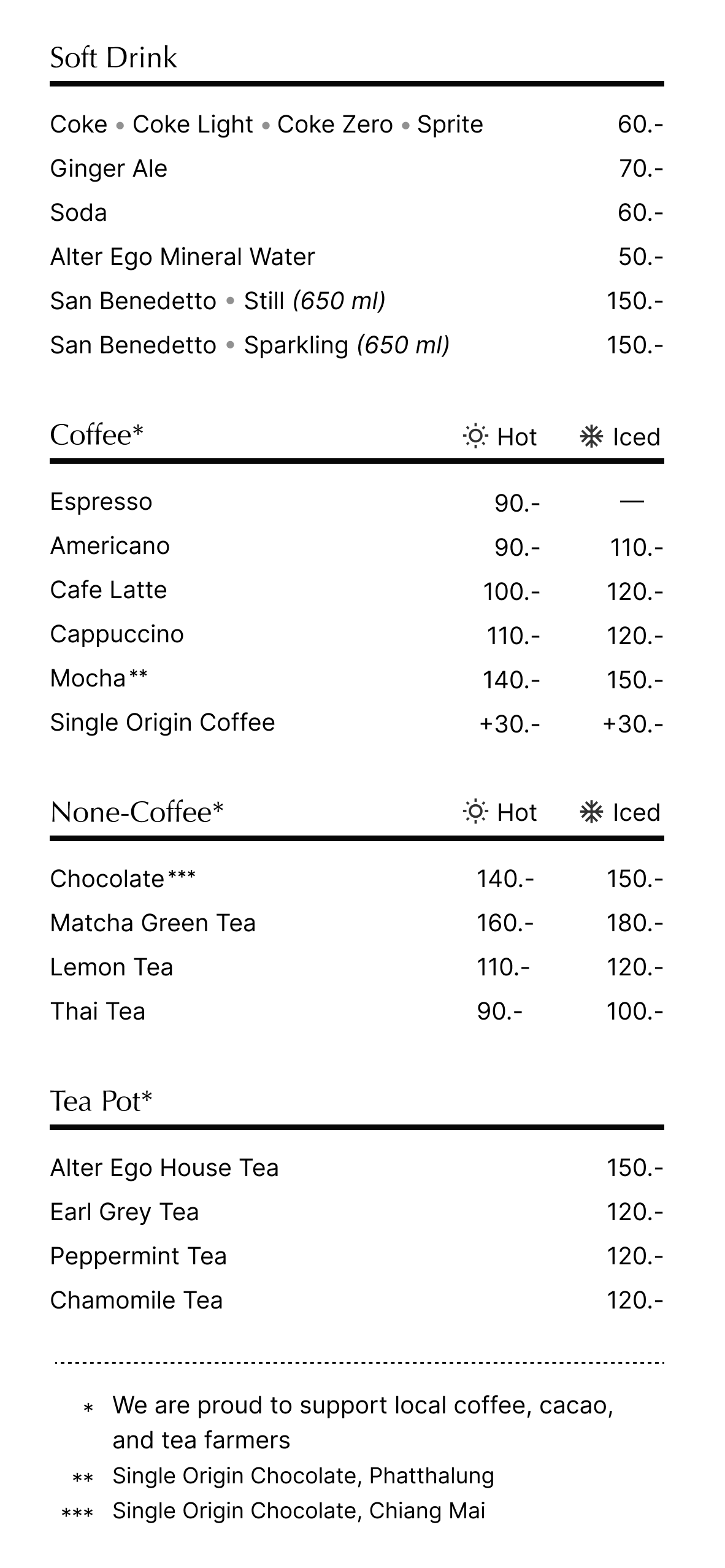 Beverages Desserts Starters Bar Menu Main Course Pasta & Risotto Kids Menu Food and beverage prices are subject to a 10% service charge and 7% VAT